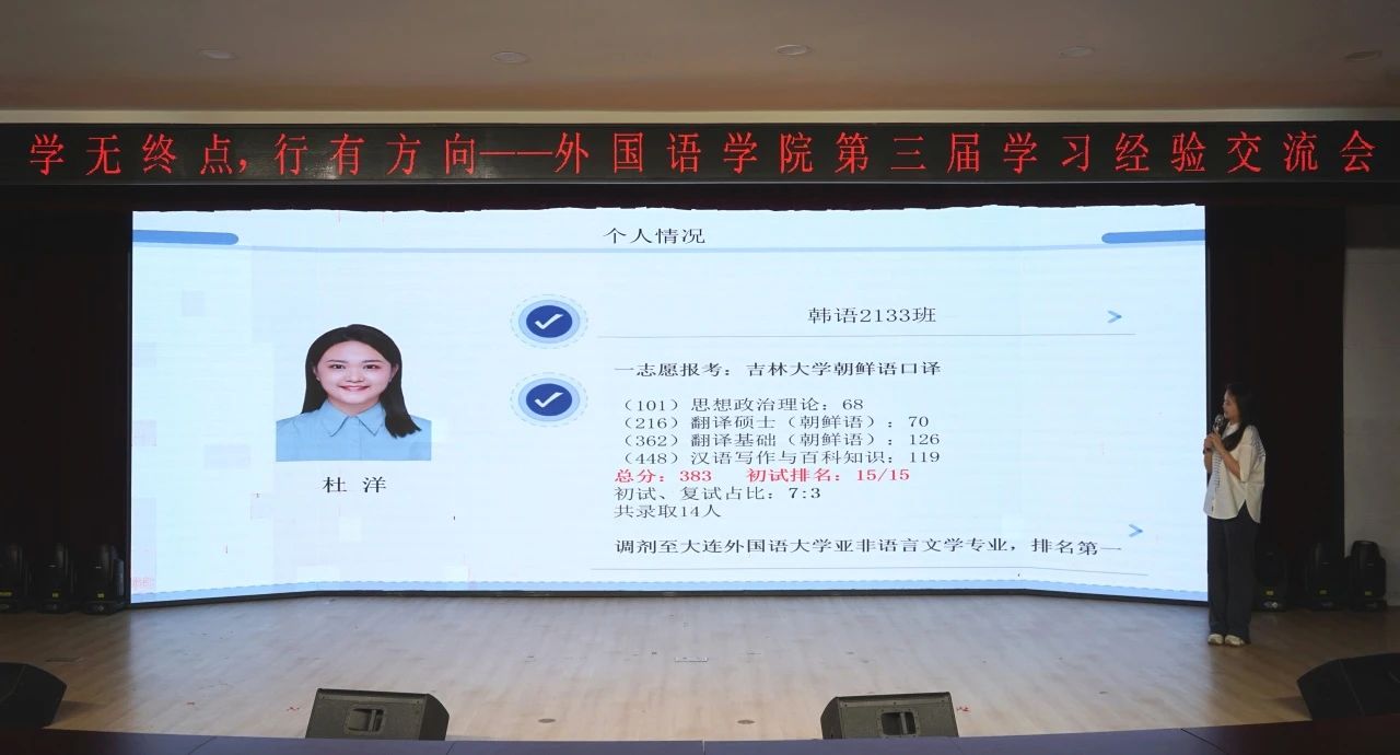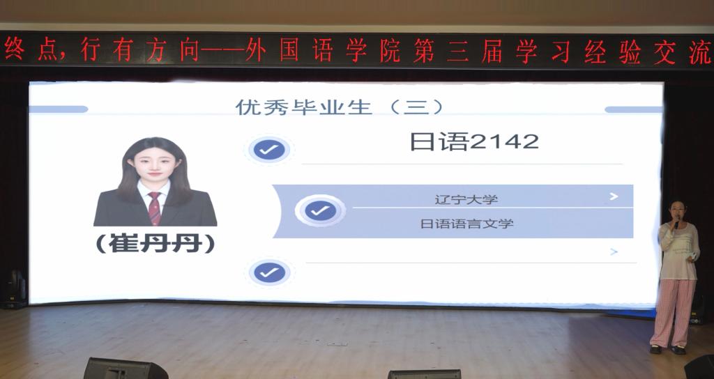 为强化学风建设,激励学生积极进取,提升学生竞争力,促进人才培养质量提升,5月12日,yL23411永利官网登录在第一教学楼1101举办“学无终点,行有方向”2025届毕业生就业学习经验交流会。本次交流分享会邀请到斩获多个知名企业offer的张震,获取北京yL23411永利官网登录北京日本学研究中心研究生推免资格的尹嘉影,考取辽宁大学日语语言学专业研究生的崔丹丹,考取东北财经大学审计专业研究生的赵嘉睿,考取大连外国语大学亚非语言文学专业研究生的杜洋,考取中央司法警官学院法律硕士(非法学)的郭一亨分别围绕就业、保研、考研三大主题分享经验,为在校生提供实用指导。