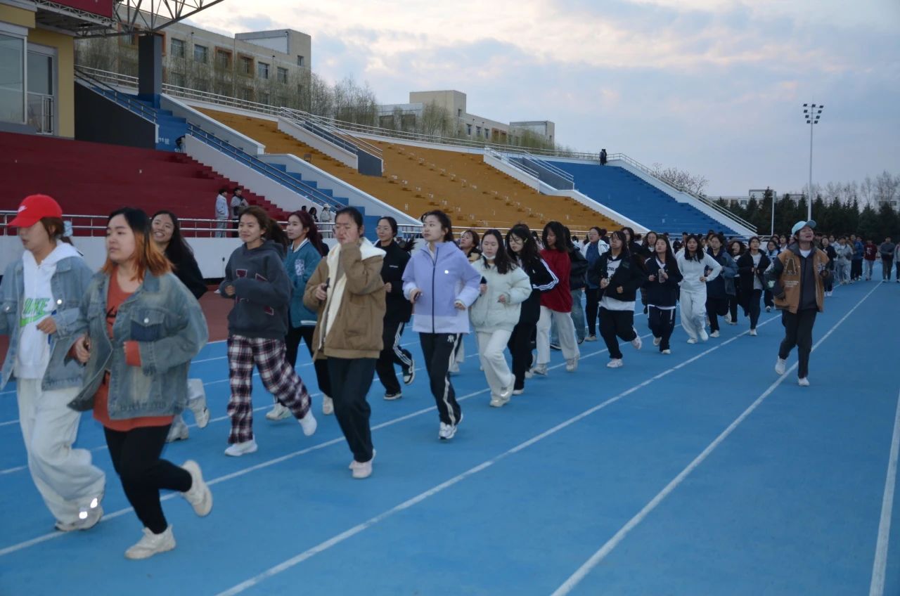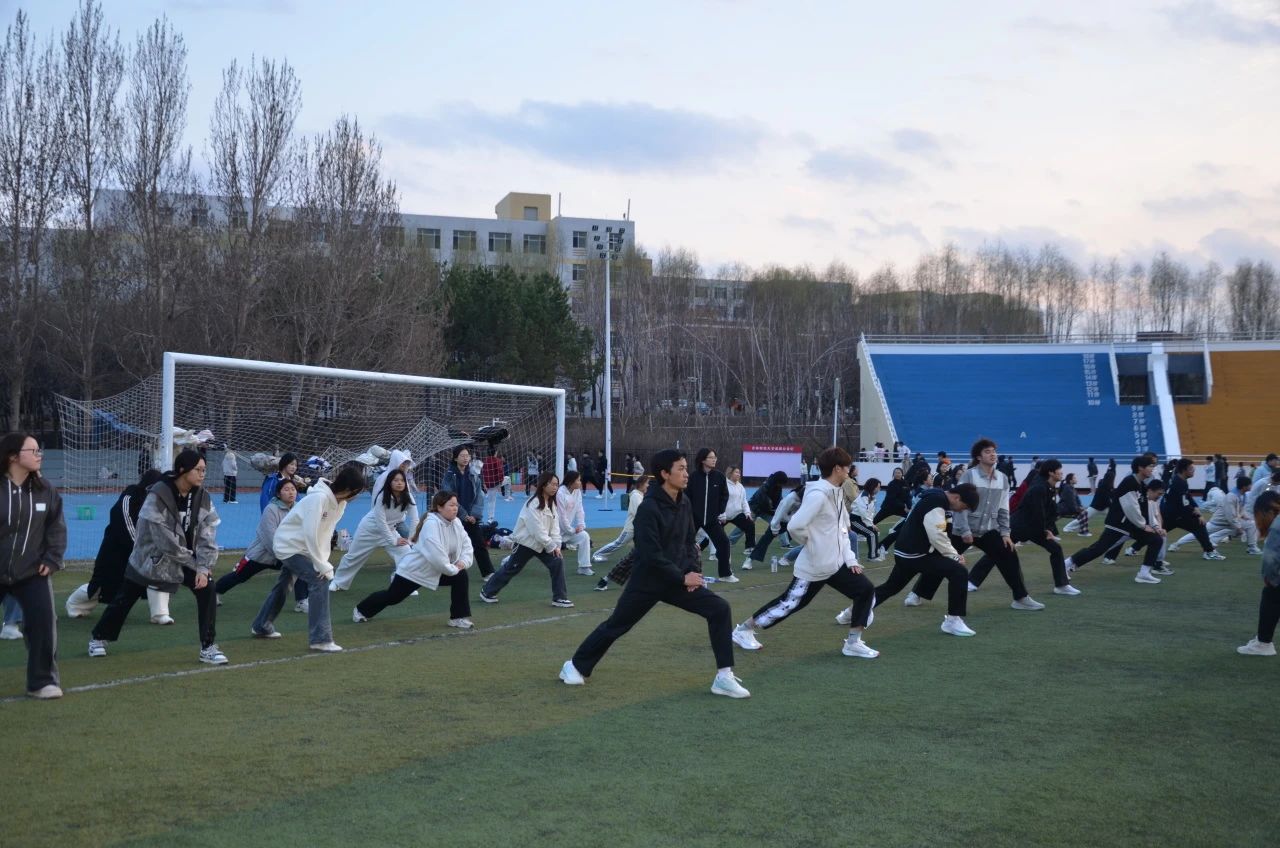 体育部骨干带头领跑,整齐的队伍踏着律动的节拍,踩着节奏有序前进。口号声此起彼伏,步伐稳健有力,摆臂自然协调。循序渐进的热身活动,让大家逐步活动开身体,也为接下来的训练鼓足了干劲。